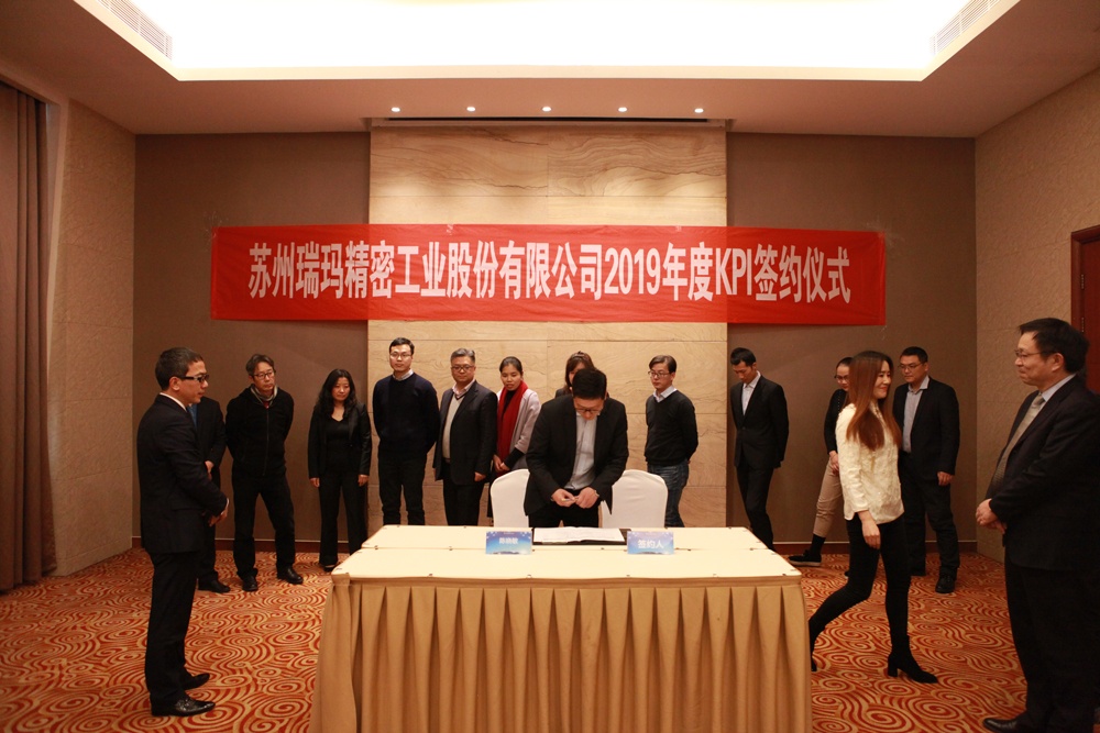隨后,陳總與他直接管理的下屬負責人分別簽署了2019年KPI考核責任書,各層級負責人也分別與其直接下屬簽署了2019年KPI考核責任書。每張KPI考核責任書雖是 薄薄的一頁紙,但承載了公司2019年最核心重點的工作要求,它不僅是作為績效考核的重要依據也是公司為之奮斗的目標任務。通過層層分解、逐級承諾,希望管理層以身作則,帶領全體員工勇往直前,為完成瑞瑪精密2019年的各項計劃目標奮力拼搏!